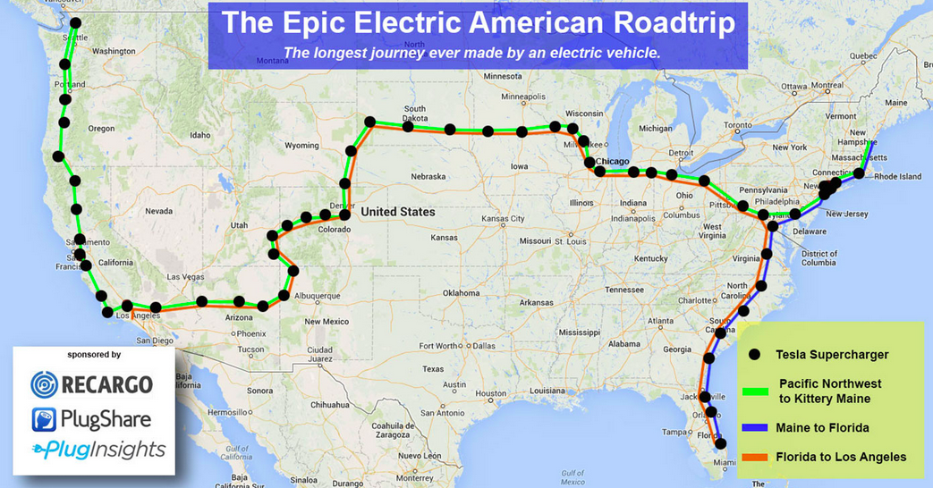 Blue Practice and PlugShare organized a Guinness World Record breaking EV Trip to showcase the potential of all-electric, cross country travel with the longest car trip in history to use all plug-in power.